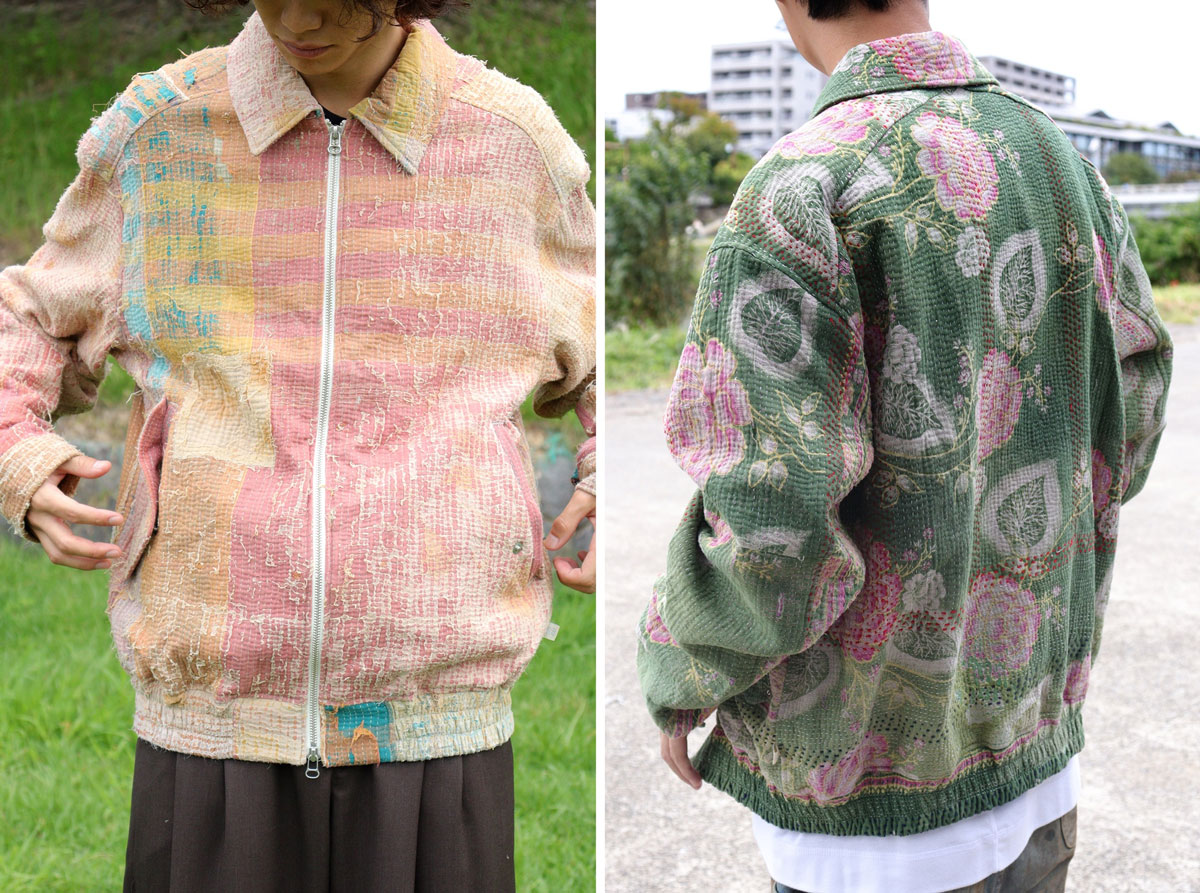 この度、印別注企画と致しまして、インドの伝統的な刺し子布、カンタキルトを贅沢に使用したワークブルゾンをFAF(Fake As Flowers)様に作製して頂きました。