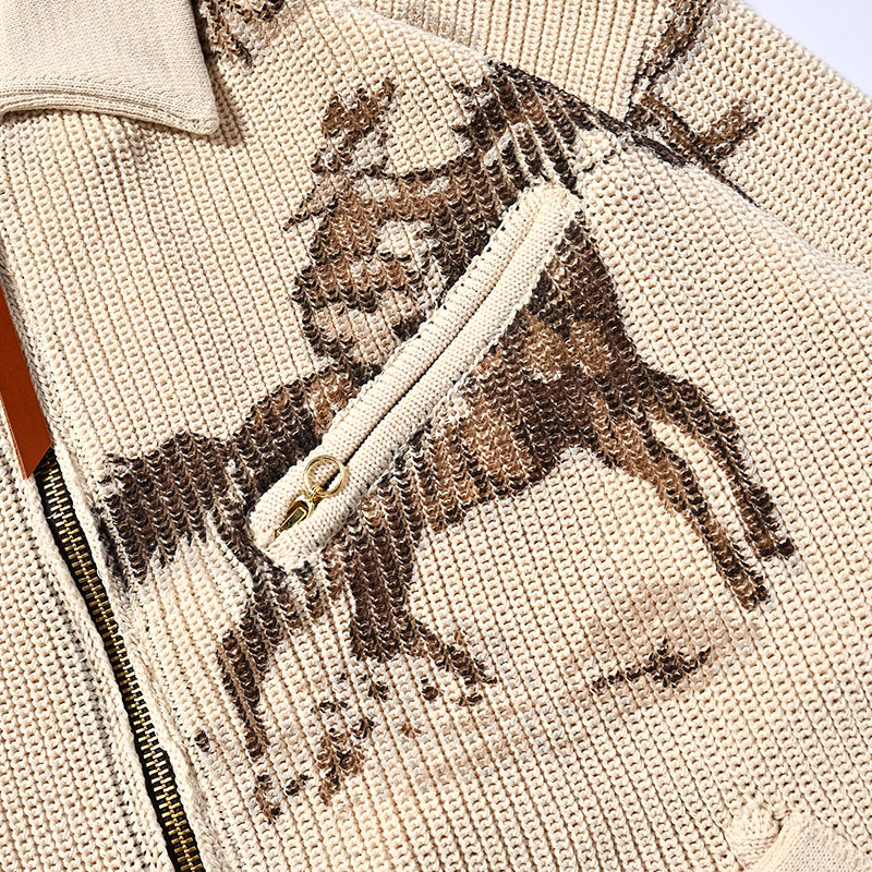 • COWBOY PRINT ZIP KNIT -3.COLOR-