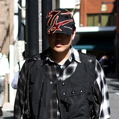 NODZOKU×CONTE STRUT タクティカルベストをメインにしたスタイル。