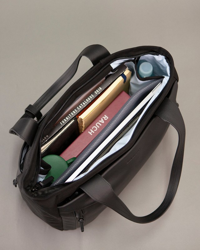 防水本革と防水ナイロンを組み合わせた軽やかで上品なビジネストート。