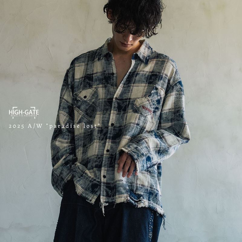 『HIGH-GATE』コットンネルを使用したダメージチェックシャツ